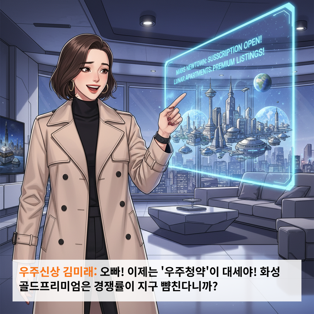 서울 아파트값이 우주선 한 대 값이라니…😂 이젠 하다 하다 우주로 이민 가야 하나 고민하는 가온이의 현실적인 걱정! 미래에도 집값 걱정은 여전할까요? 여러분이라면 우주청약에 도전하시겠어요, 아니면 지구에 남으시겠어요? 🚀